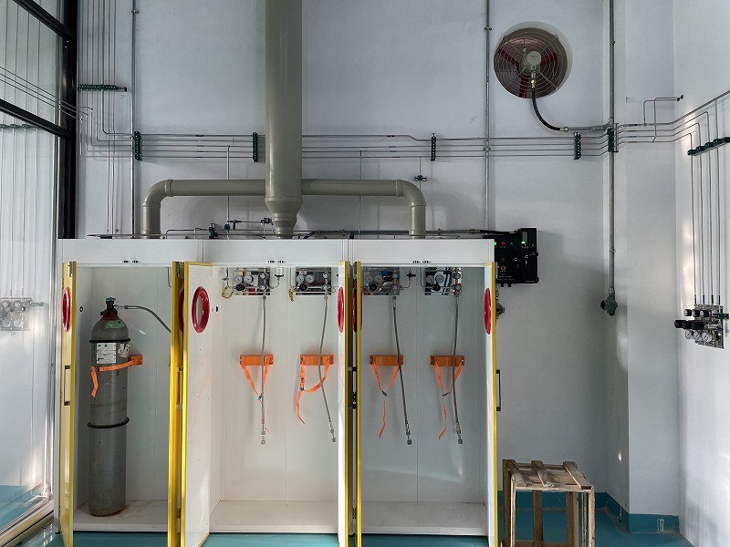 除了簡單的供氣系統以外,特氣房一般都獨立于主場房而單獨建設,其規劃時需考慮建筑物的防火、泄爆、防火防爆間距、危險物的總量控制等。常規供氣系統一般也采用多種氣瓶柜共設在一個氣體室;而對于大宗特氣,會根據氣體特性和相容性將氣體房分成可燃氣體房、腐蝕性氣體房、惰性氣體房、硅烷氣體房、毒性氣體房等。氣體房必須有良好的通風,氣體房的選擇和設計一般由設計院完成。